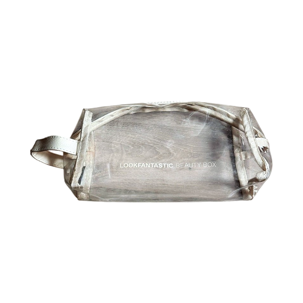 LookFantastic Transparent beauty box bag with cream-color trim and zipper. There are some visible sign of use, but other than that, no major faulty part. Zipper is working perfectly. Can fit a lot.