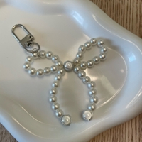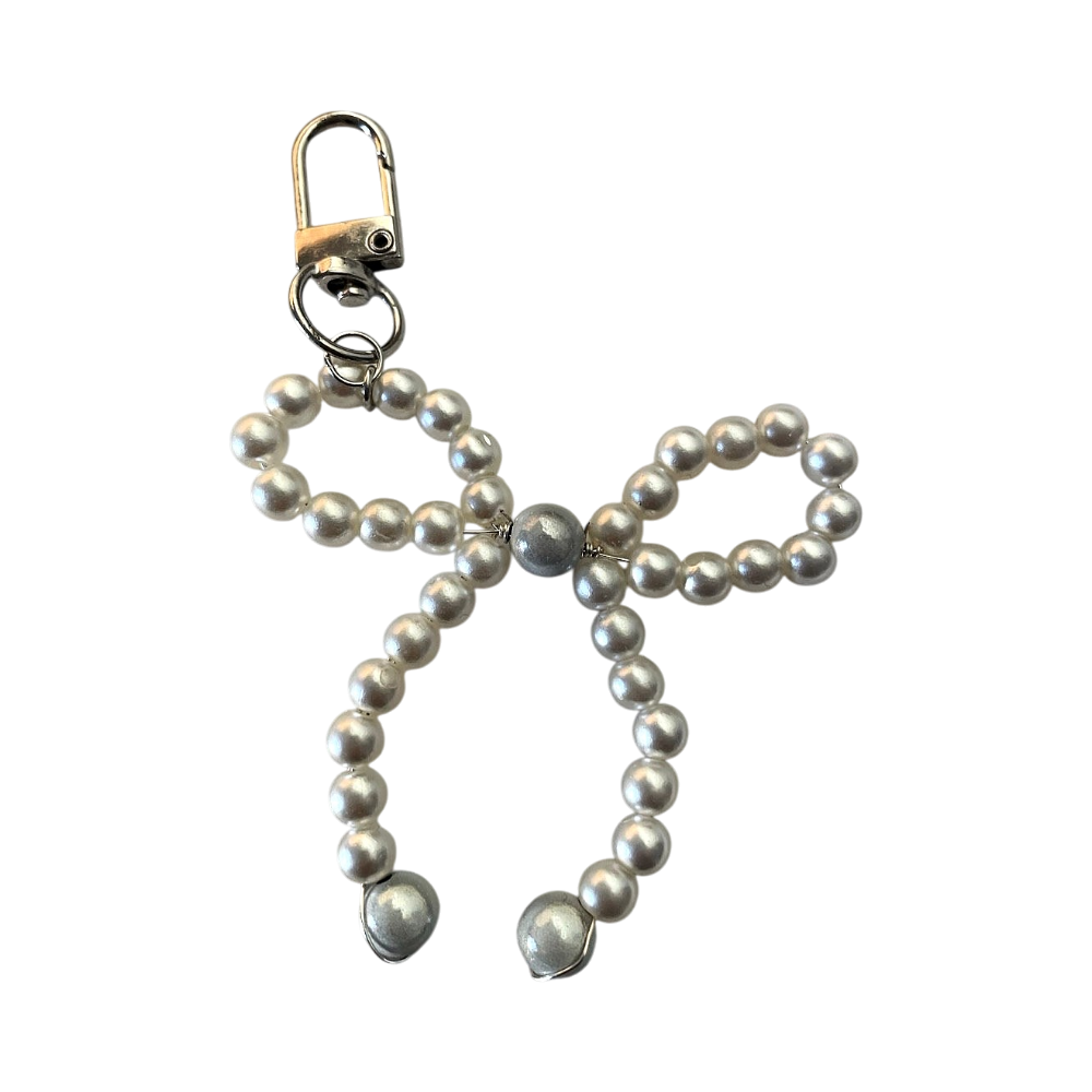 Käsintehty rusettilaukkukoru heijastavilla helmillä ja akryylihelmillä🤍