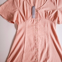 Nude pink v-neck dress with buttons all the way, new with tags.