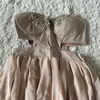 Beige juhlamekko koristeellisella yläosalla, koko 38.