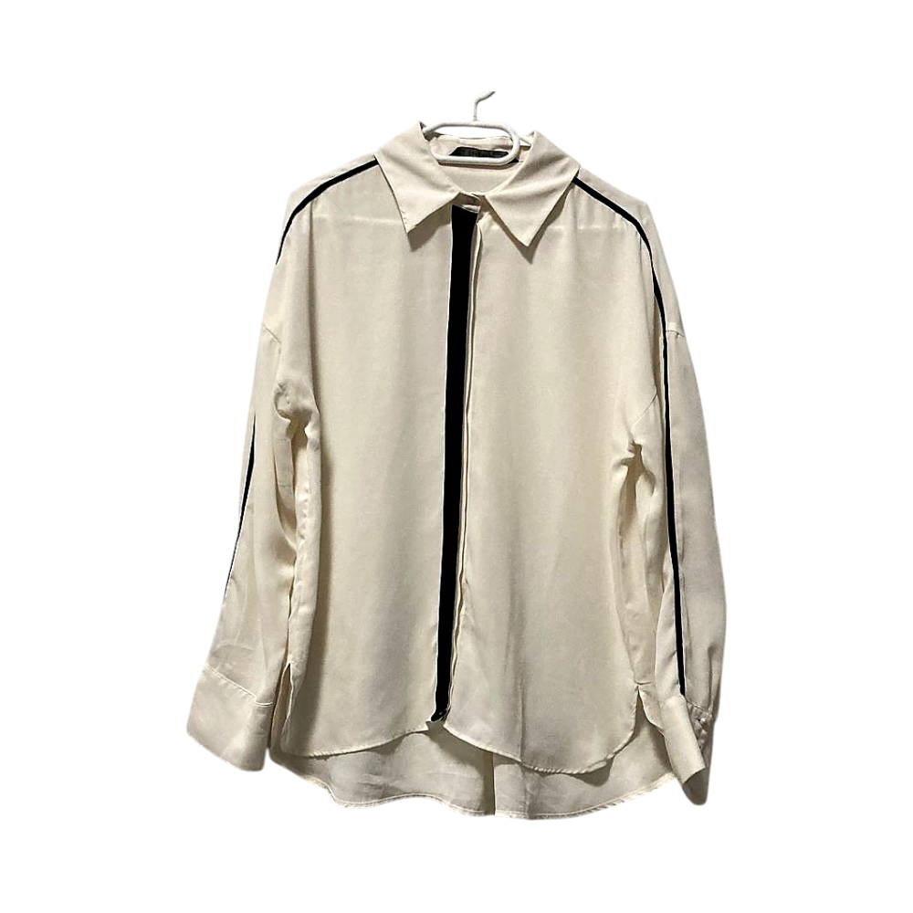 Zara Basic Elegant Cream Blouse with Black Velour Trim – Size M