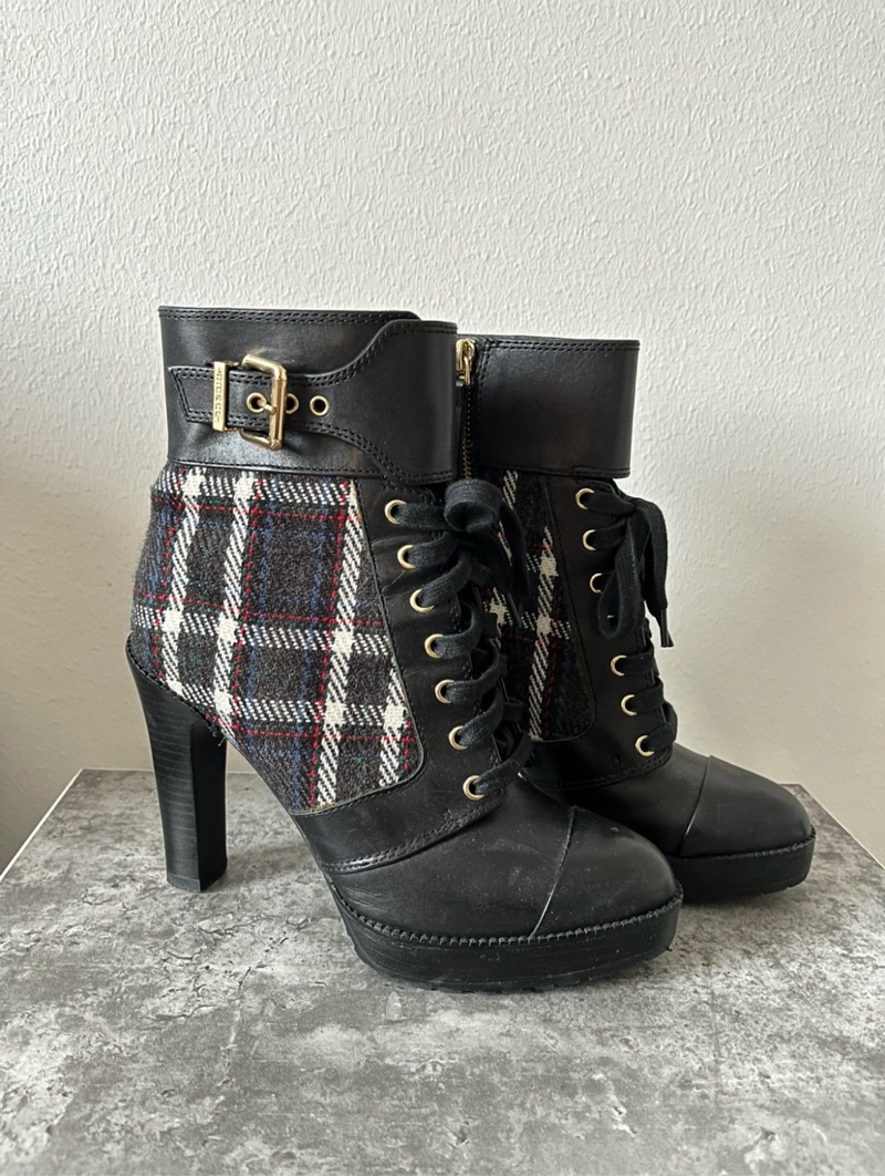 Dieselin mustat nahka nilkkurit n. 9cm korolla, koko 36. Sivussa vetoketju ja myös nauhoilla saa kiristettyä kenkää. Hieman kapeampi malli. Käytetty vain pari kertaa ja ovat hyvin siistissä kunnossa.