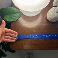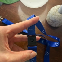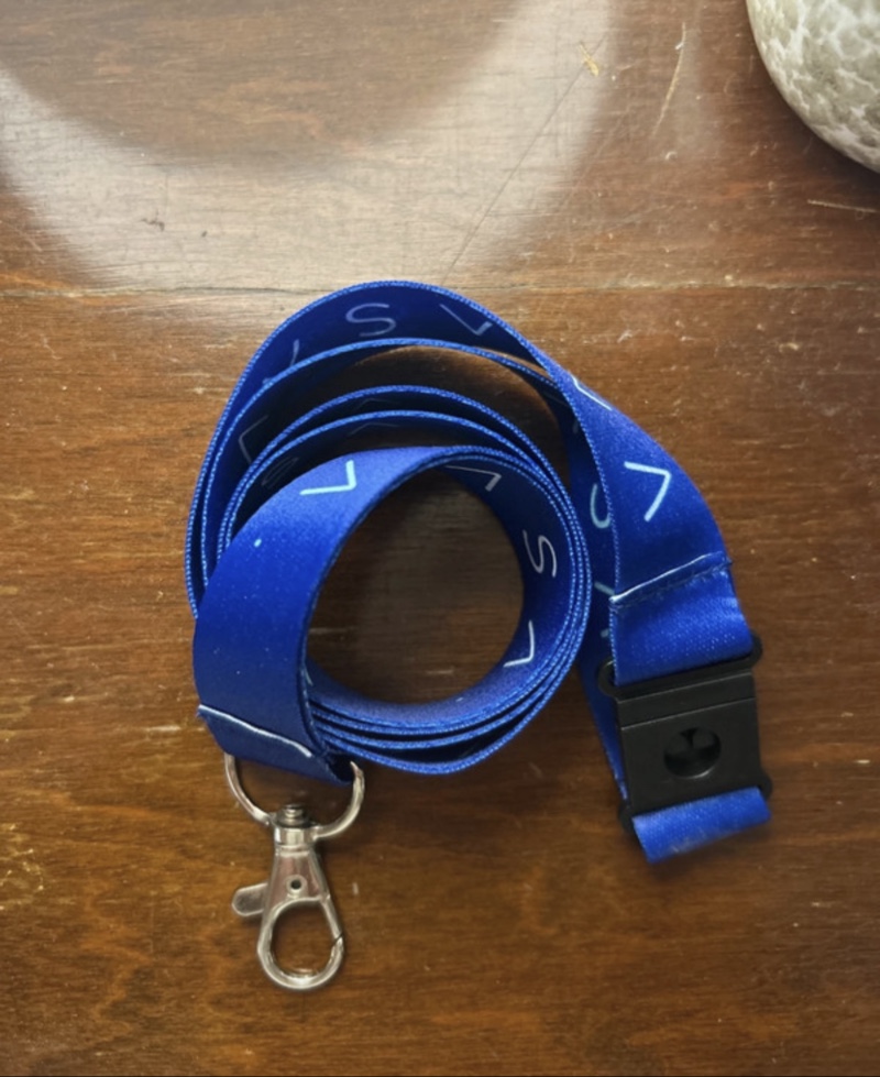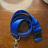 Blue fabric lanyard with metal clip and quick-release buckle.