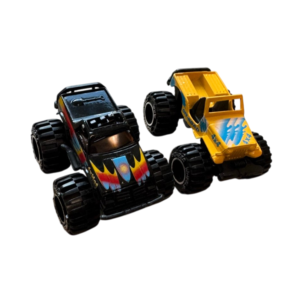 Myydään kuvienmukaisessa kunnossa oleva, monet leikit nähnyt 2kpl setti leluautoja.