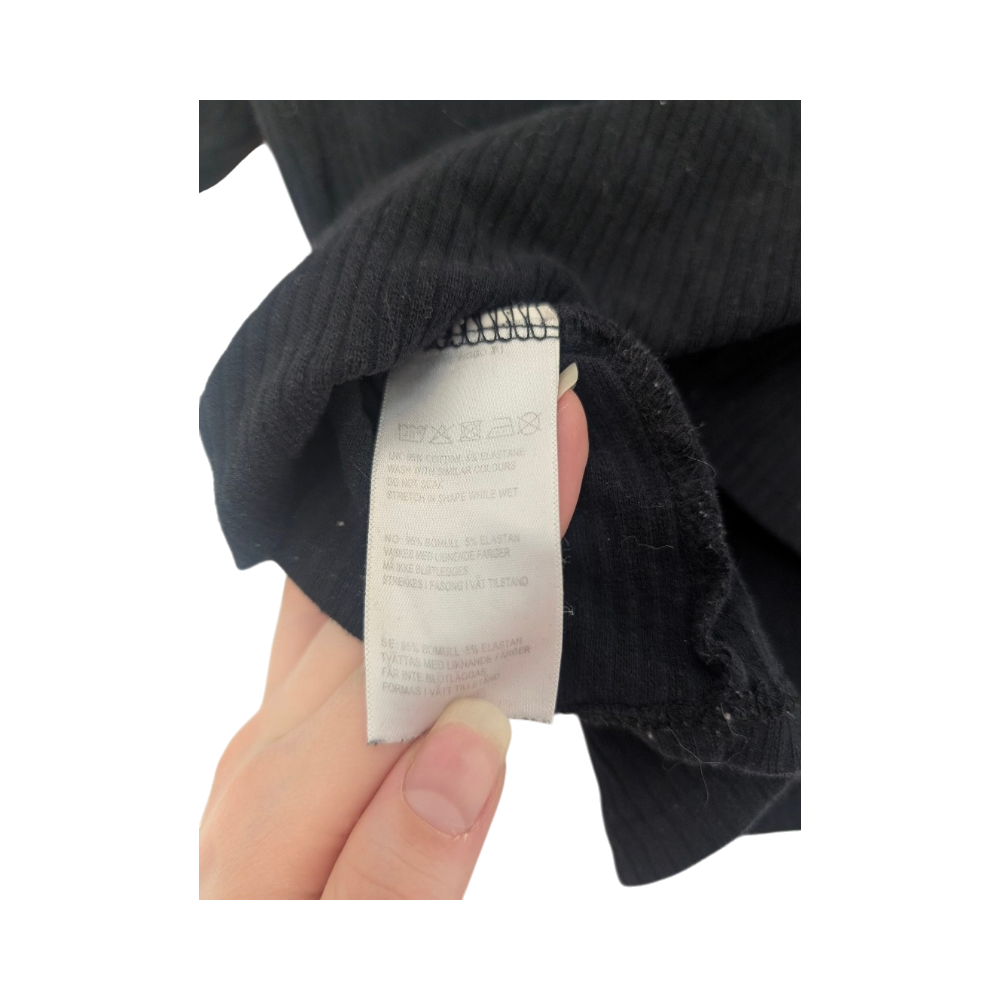 Black ribbed short sleeve turtleneck top, stretch fabric. Colour slightly faded