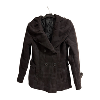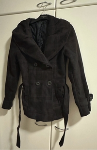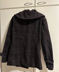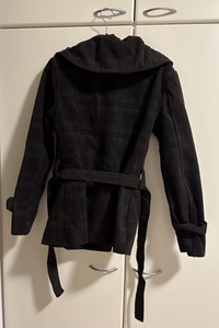 Uutta kotia etsii M-koon villakangastakki! Ei näkyviä käytön jälkiä. Takki näyttää kuvissa samanväriseltä kuin se oikeasti on. Takkiin kuuluu myös vyö, joka näkyy osassa kuvia. Pesty.