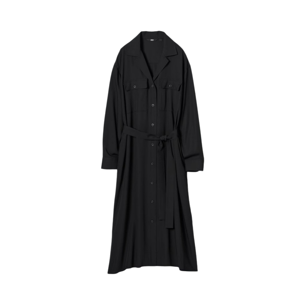 UNIQLO SHIRT DRESS EASY CARE UV PROTECTION LONG SLEEVE CLASSIC BLACK Size S