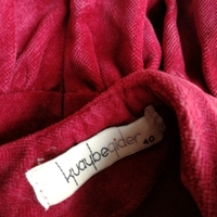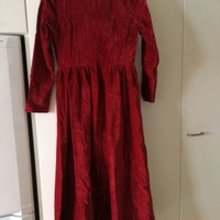 Pitkä viininpunainen puuvillainen samettimekko. Yläosa sopii varmaan paremmin pienirintaiselle ja jolla suht kapeat hartiat. Koko 40 mutta yläosa on itselle m-kokoisena pieni. Olen vain sovittanut. Rypyssä säilytyksen jäljiltä.