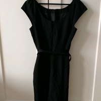Musta villamekko, musta vuorikangas, takana vetoketju, vyö. Koko 12P, vastaa mielestäni noin l-kokoa, tarkemmat mitat kokolapussa, joka kuvissa. Kaipaa silitystä.