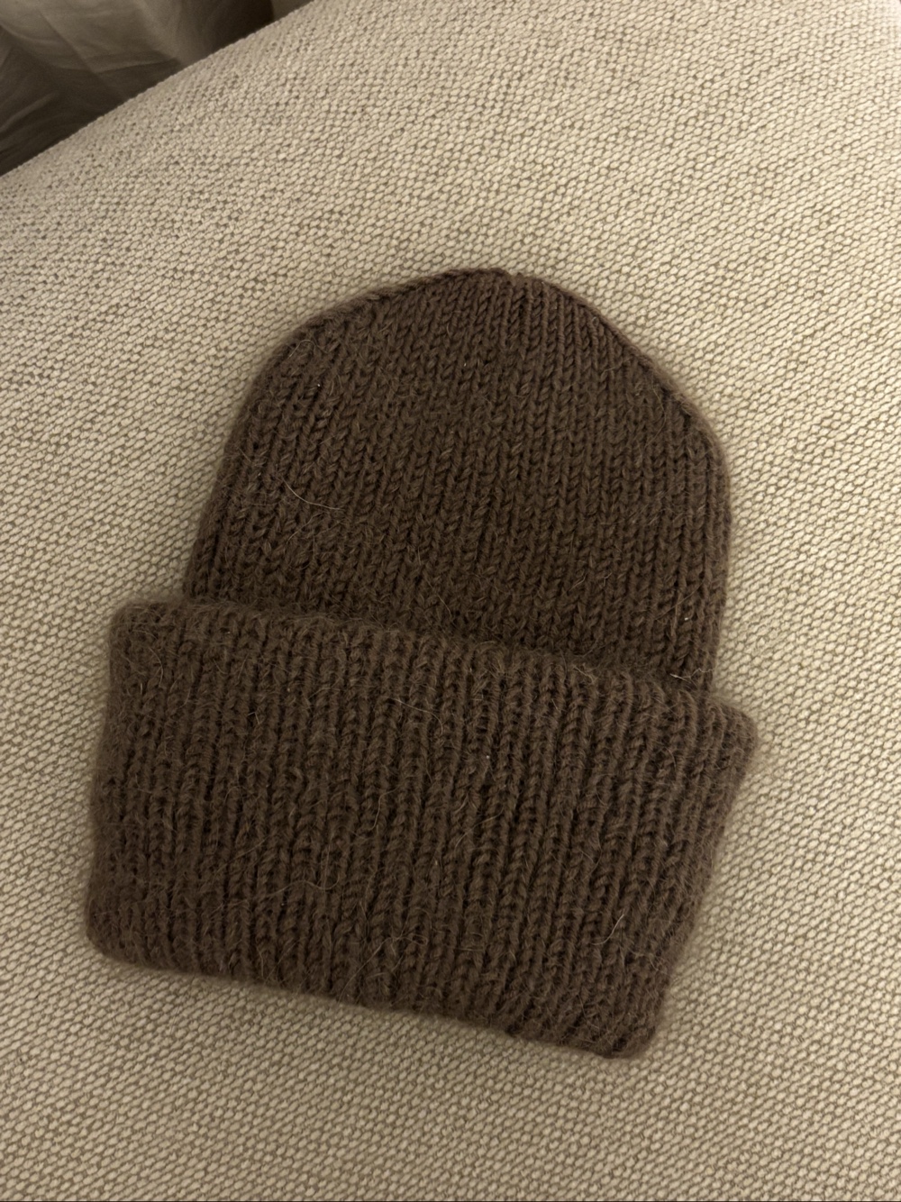 Väri ruskea, yksinkertainen neulepipo. Sopii syksyn ja talven käyttöön.