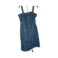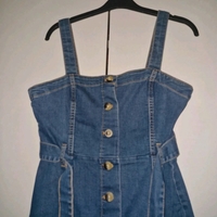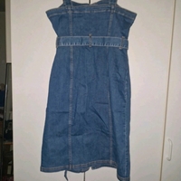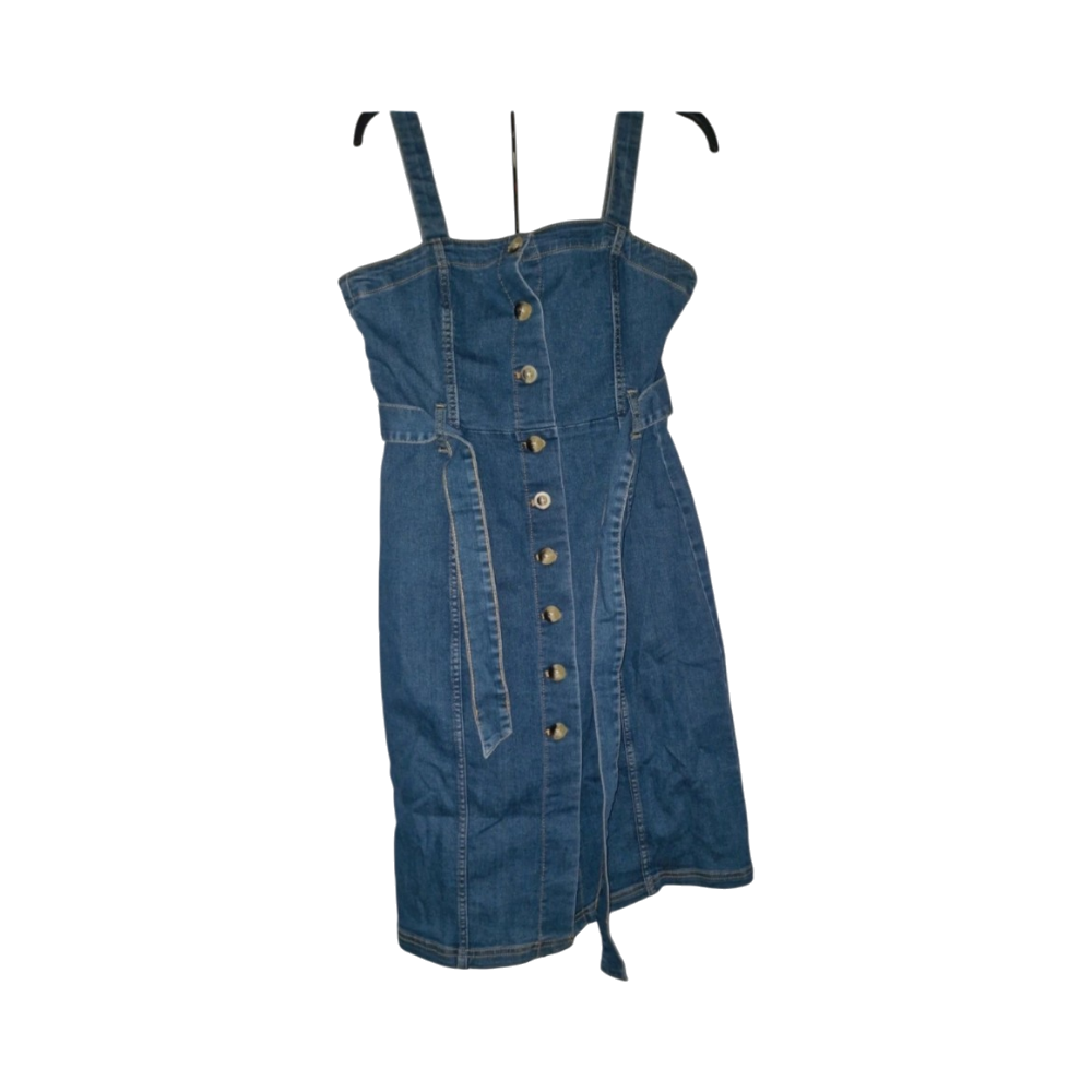 Sininen napitettava farkkumekko, vyö mukana, koko 38.