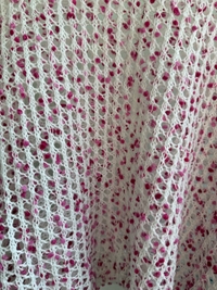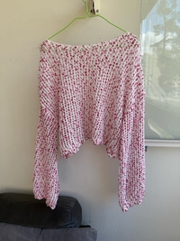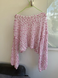 Valkoinen kevyt crop-neulepusero pinkeillä pilkuilla, pitkät hihat. Muutaman kerran käytetty, moitteeton kunto. Koko 3XL.