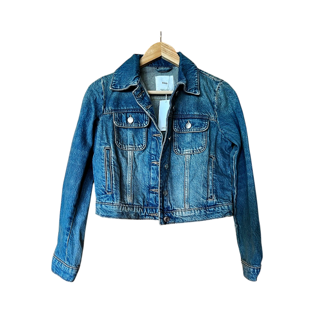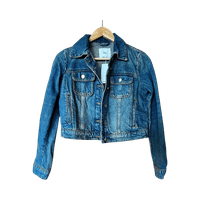 Naisten sininen farkkutakki, koko XS, lyhyt malli. Sovitettu, käyttämätön.