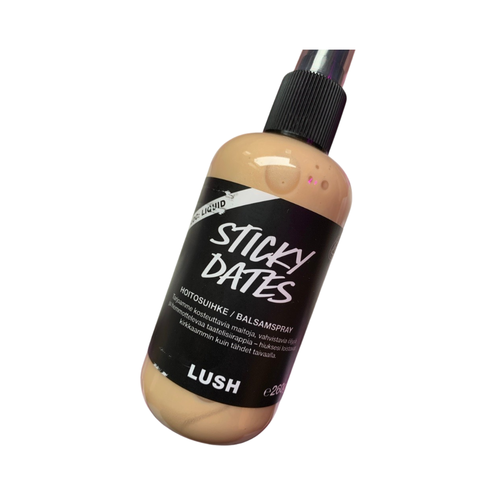 Lushin Sticky Dates -hoitosuihke. Kosteuttava ja siloittava, 260 g. Käyttämätön ja avaamaton