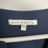 Kerran käytetty Mint & Berryn tummansininen juhlapaita koossa XS. Materiaali ohut, kevyt ja takaa vähän läpikuultava. Edessä kangasta kaksi kerrosta, joten ei näy läpi. (Ovh 30€)