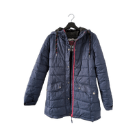 Deminin sininen talvitakki ollut käytössä yhden talven, joten hyvässä kunnossa! Sininen pinkeillä yksityiskohdilla