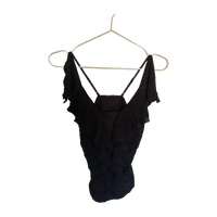 Aivan ihana musta toppi röyhelöyksityiskohdilla. Kokeiltu päällä kerran.