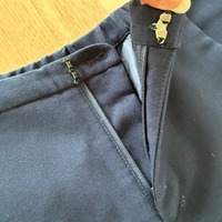 Naisten lyhyet, siistit navy shortsit, vetoketjulla ja hakasella.