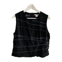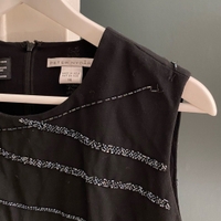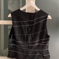 Musta vintage-henkinen toppi, jossa kivat sinertävät kirjailut. Vastaa mielestäni 38-40 kokoa. Pieni purkauma kirjailuissa toisessa olkapäässä (katso kuva). Muuten kuin uusi! 100 % wool/laine.