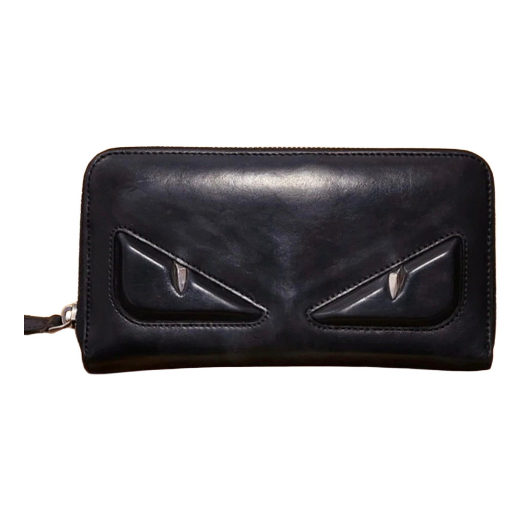 Musta nahkainen Fendi-lompakko. Edessä tunnettu Bag Bugs -yksityiskohta.