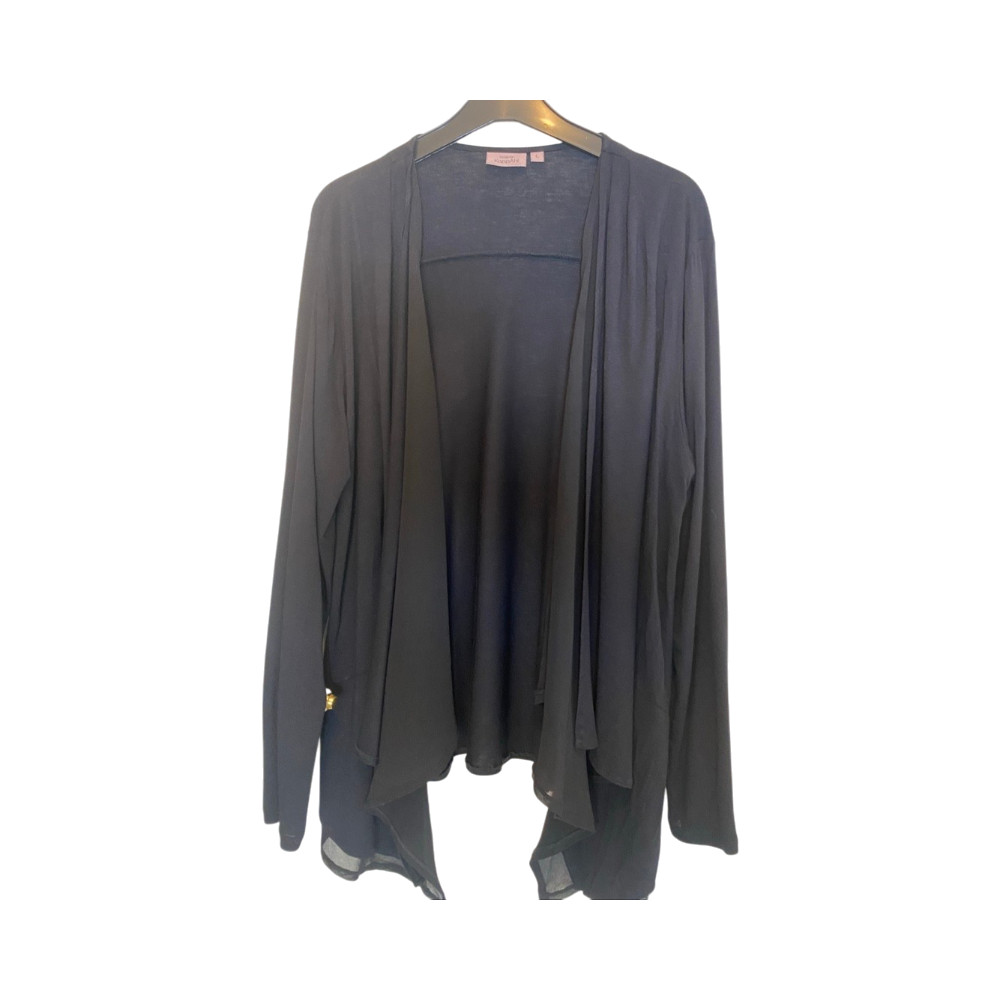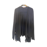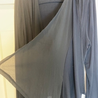 Ohut musta trikoojakku jossa sifonki liehukkeet edessä. Takapituus 64 cm, liehukkeilla edessä 80 cm. Kai- kai 56 cm. Kissa/koiratalous