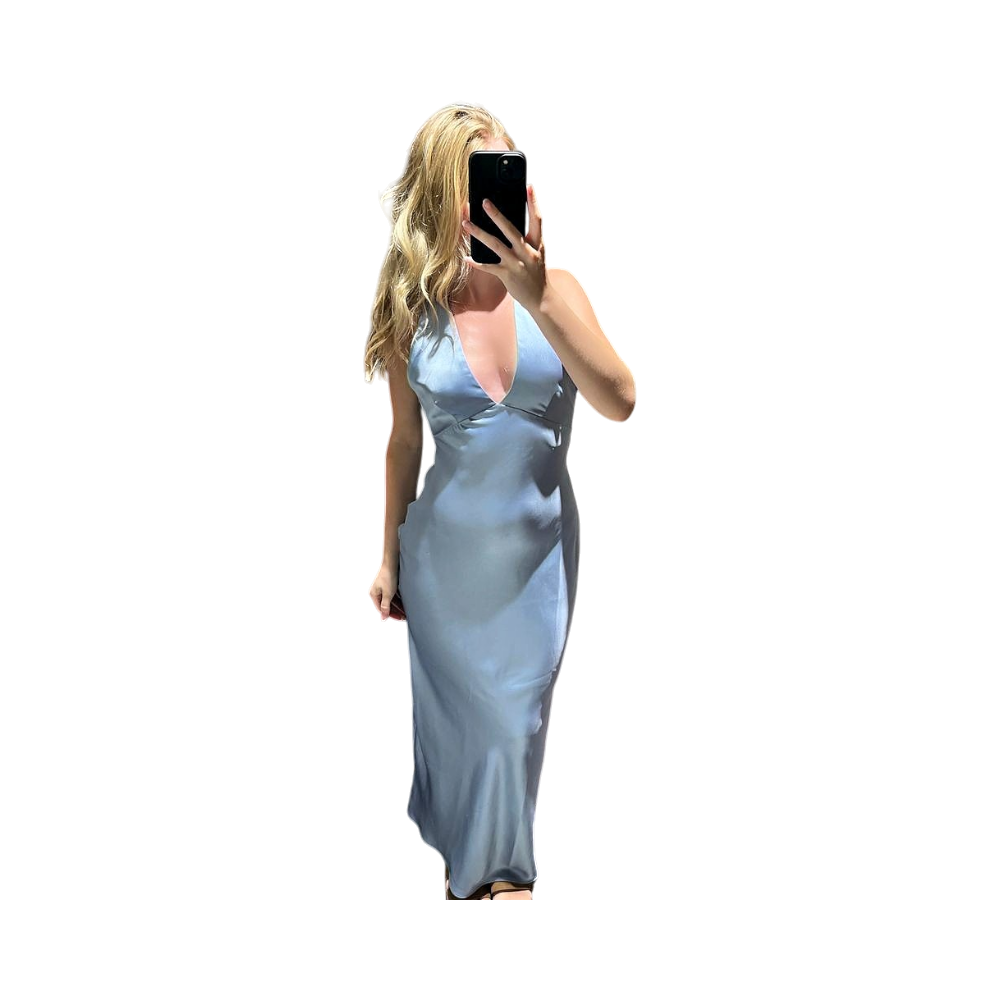 Ihana zaran vaaleansininen / sininen satiininen mekko, jossa avoin selkä, vetoketjukiinnitys sivussa, koko xs, kerran pidetty, hieman rypistynyt kaapissa. Sopii hyvin myös iltapuvuksi tai valmistujaisiin. Ei myydä enää☺️