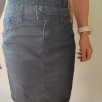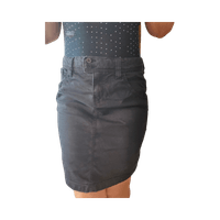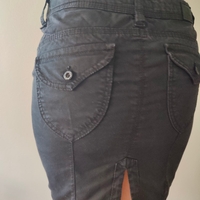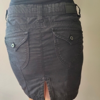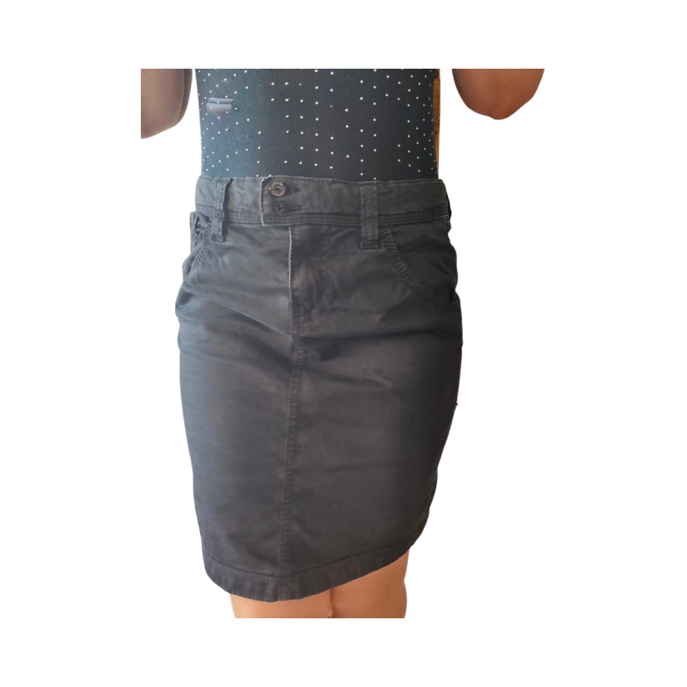Musta minihame, takataskuissa läpät, halkio takana. Koko 27 .