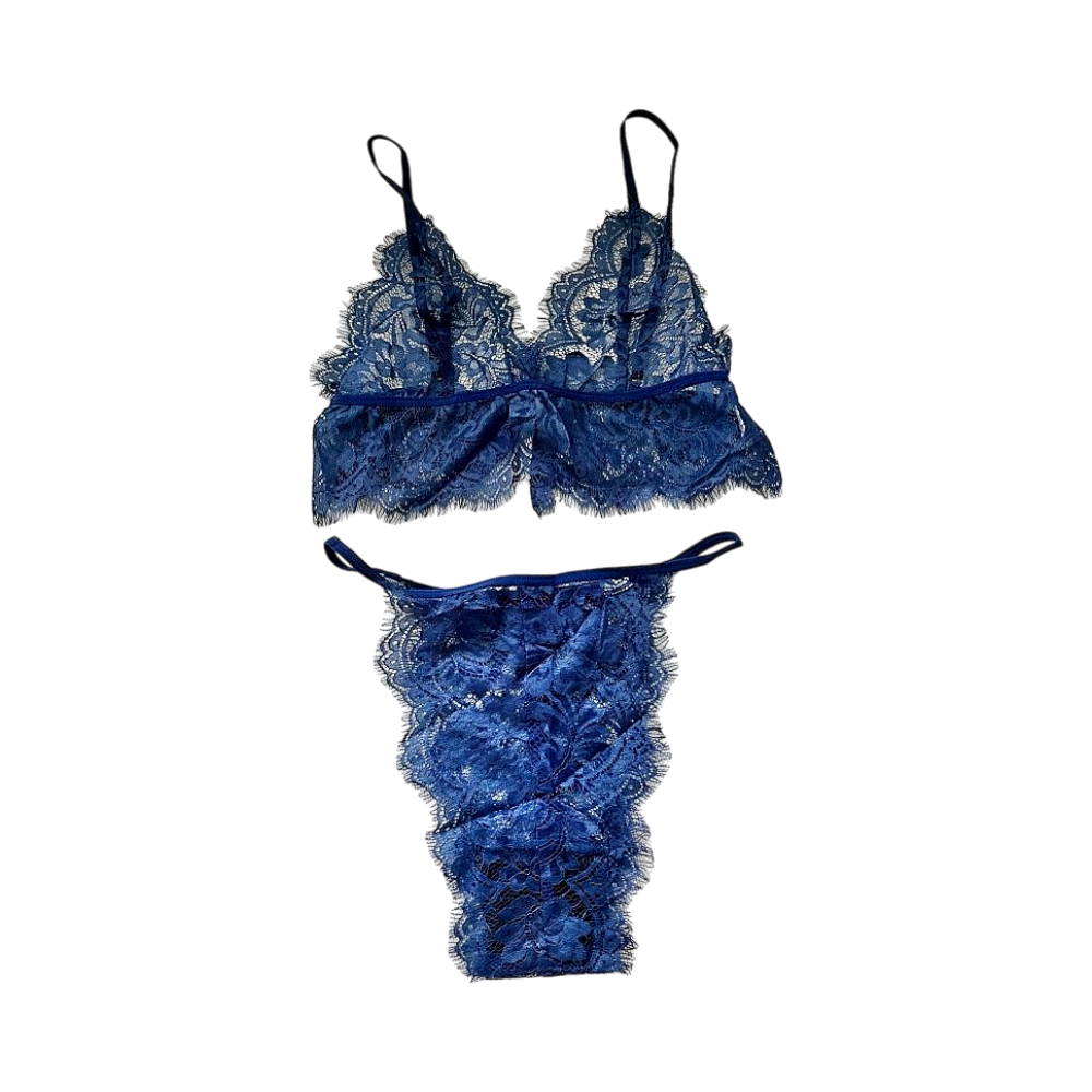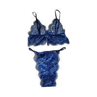 Uusi käyttämätön Sininen pitsinen alusasusetti, bralette ja stringit.