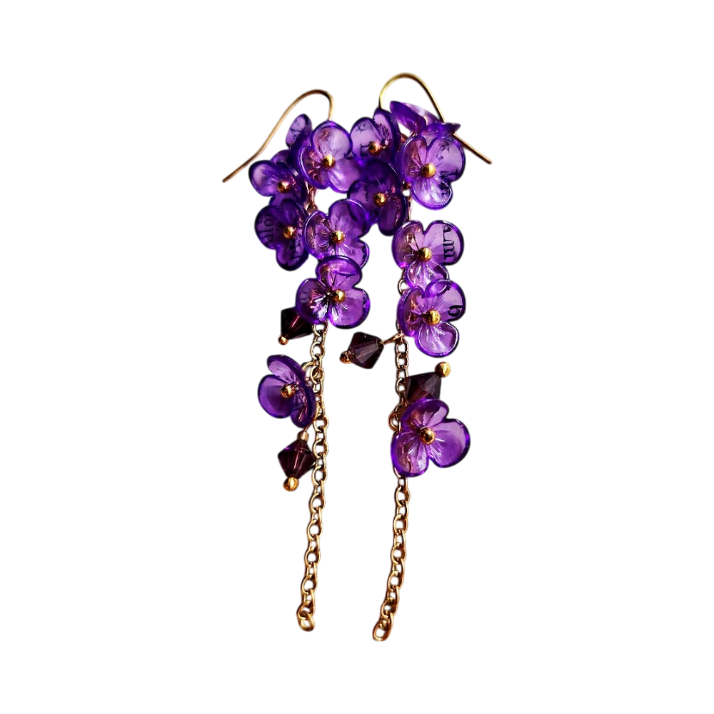 Käsintehdyt uniikit korvakorut. Näyttävät kukkakorvikset. Koukut kullattua nikkelitöntä korumetallia. Korujen pituus noin 7,5 cm. #handmade #earrings #flowers #summer #cute