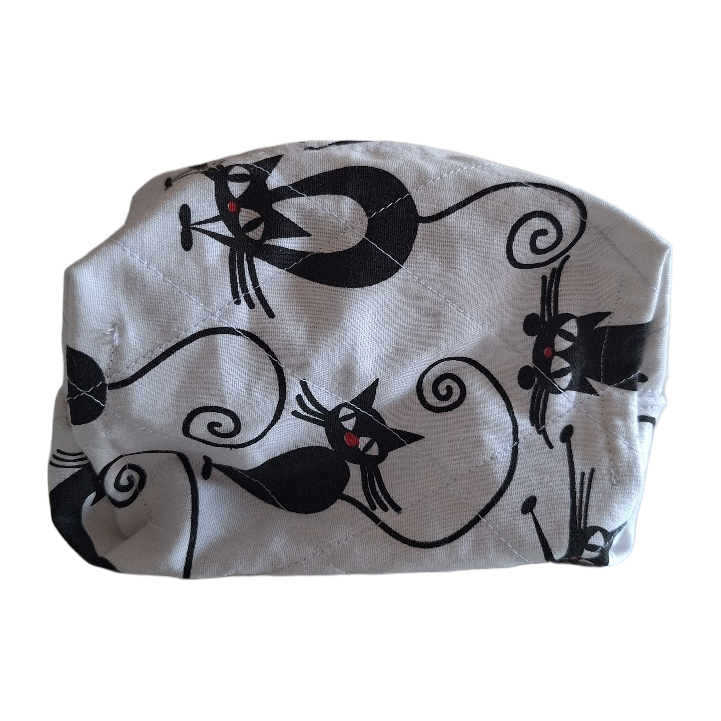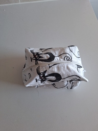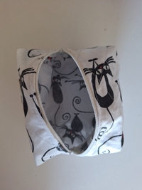 Käsinommeltu söpö meikkipussi kissakuviolla. Valmistettu 100% kierrätetyistä materiaaleista 😻