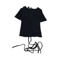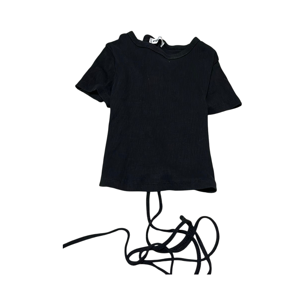 Lyhythihainen ribbattu toppi, avonainen nyöritys selässä.