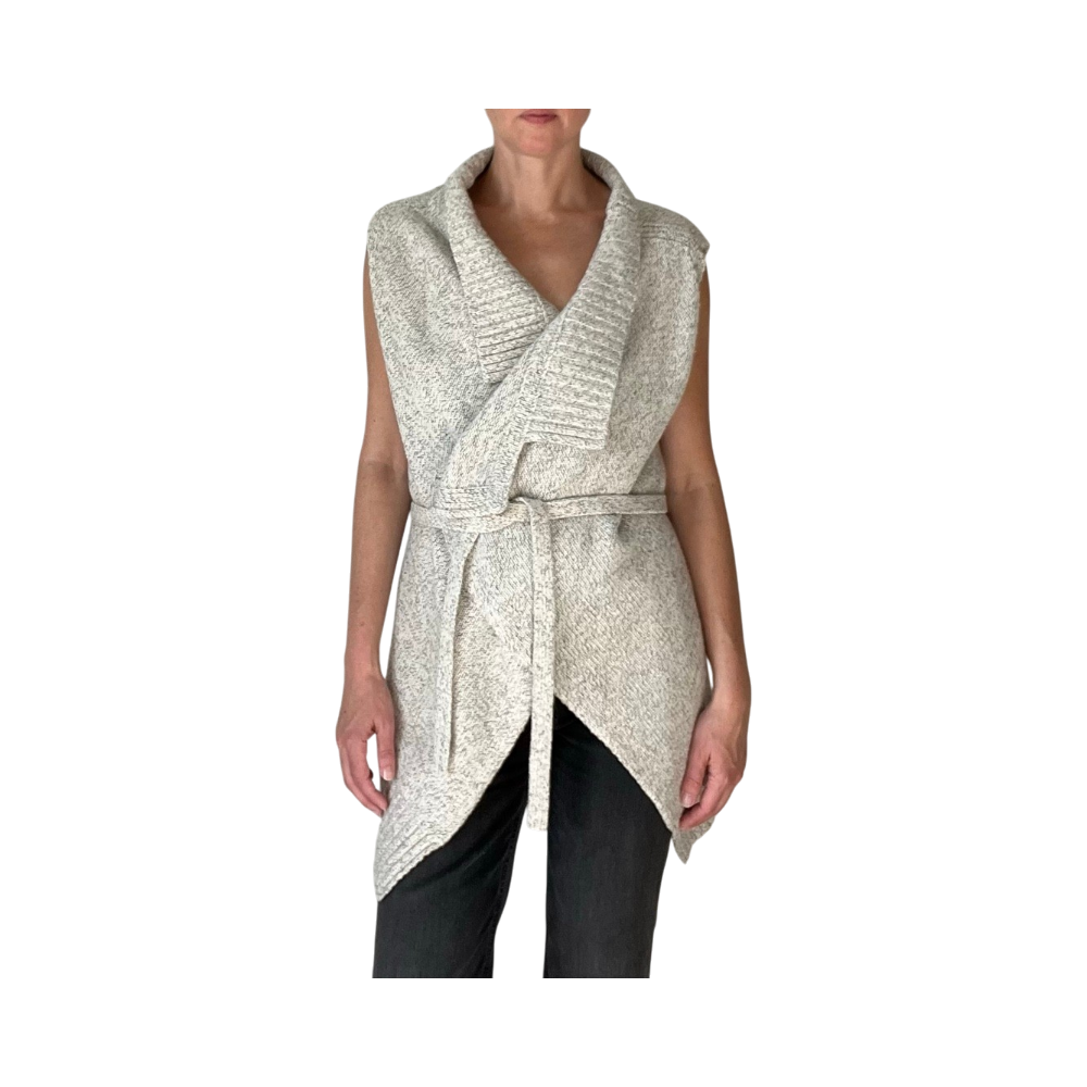 Vaaleanharmaa neuleliivi villasta. Koko XS. Kuin uusi. Malli on 162 cm pitkä. Nouto Helsingistä mahdollinen.