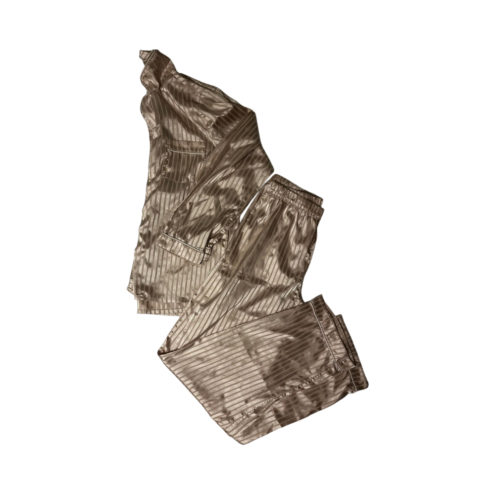 Rento satiinipyjama, raidallinen, mainio yökäyttöön.