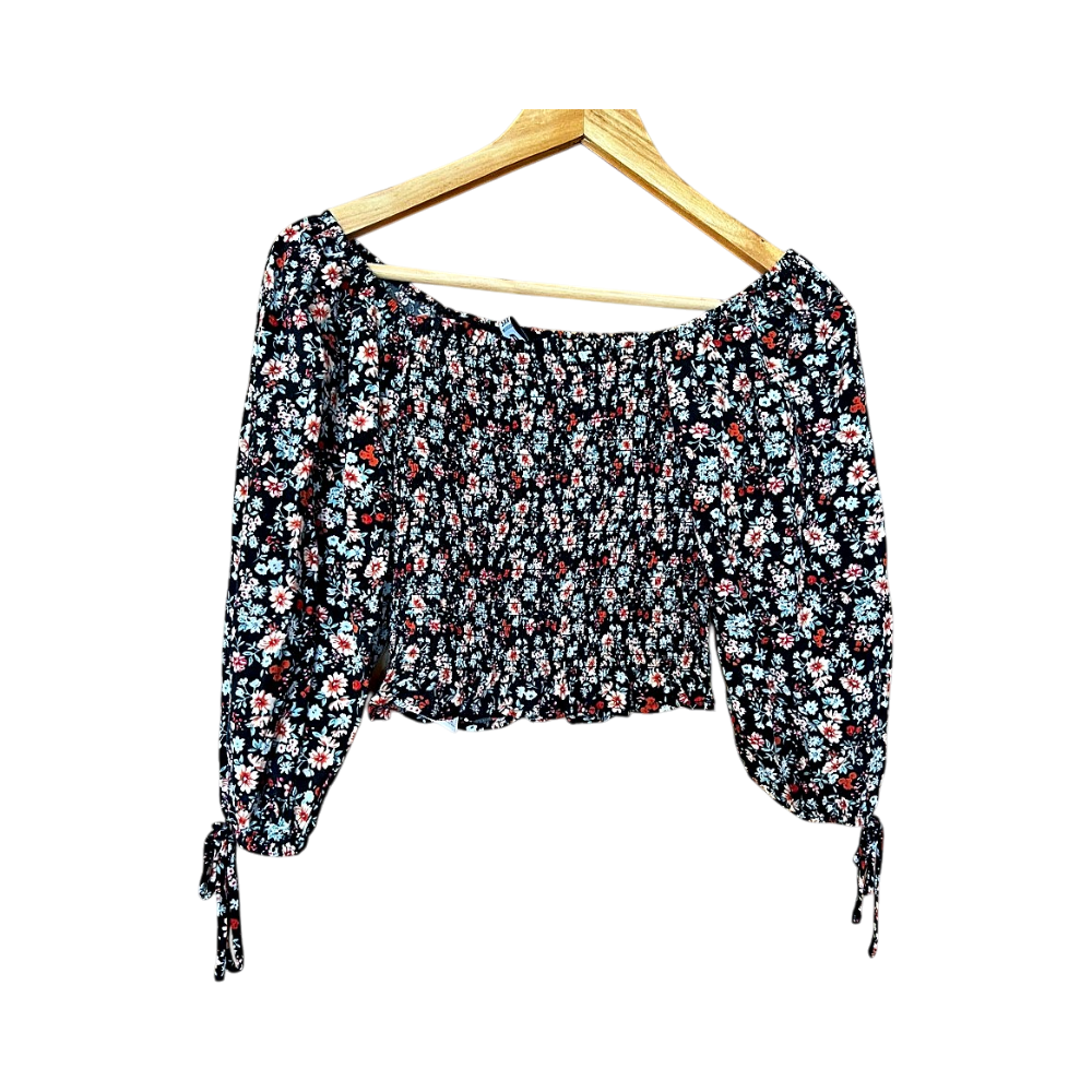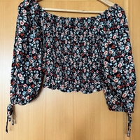 Musta kukkakuvioinen pusero
