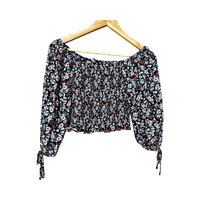 Naisten ihana musta kukkakuvioinen pusero, joustavaa kangasta. Menee myös XS kokoiselle
