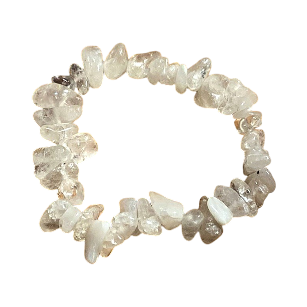 Söpö rannekoru valkoisilla kivillä, joustavaa materiaalia
