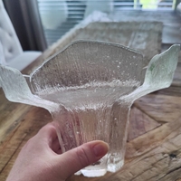 Kirkas kukkamerellinen malja, paksua teksturoitua lasia. Pertti Kallioinen/Mäntsälä Lasisepät. Pakkaan hyvin, ettei pääse liikkumaan paketin sisällä , löytyy kuplamuovia ym