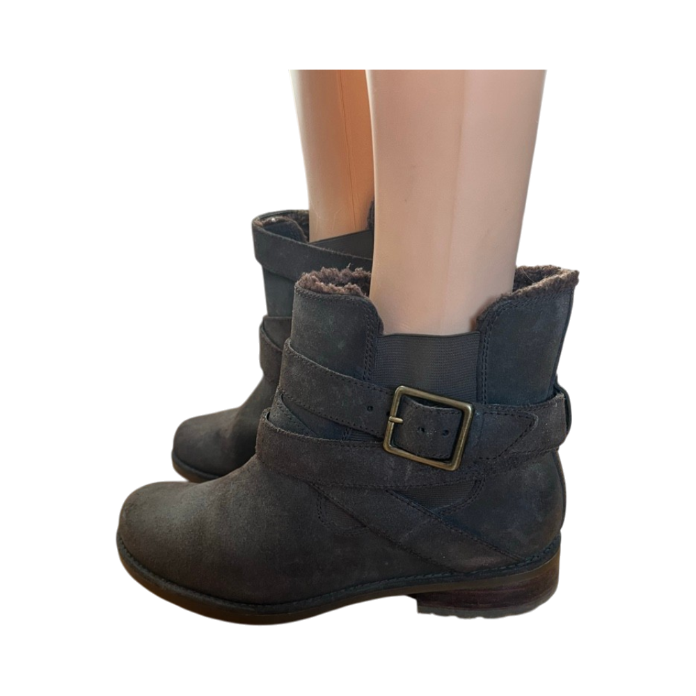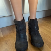 Clarks saappaat, koko 38, ruskea väri. Saappaat ovat hyväkuntoiset ja vähäiselle käytölle jääneet. Sivuilla on joustot ja solkikoriste jotka tuovat helpotusta pukemiseen.