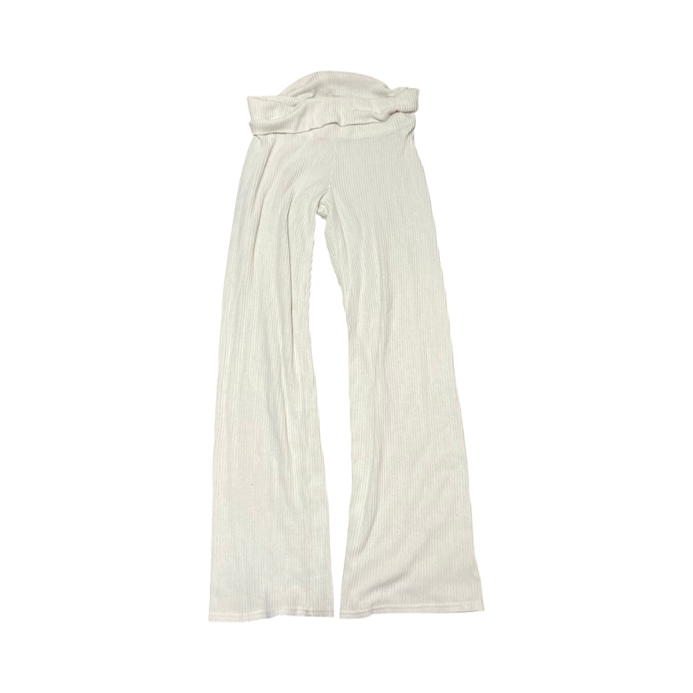 Valkoiset ribbineulotut leveälahkeiset housut, ei lappua, venyvät