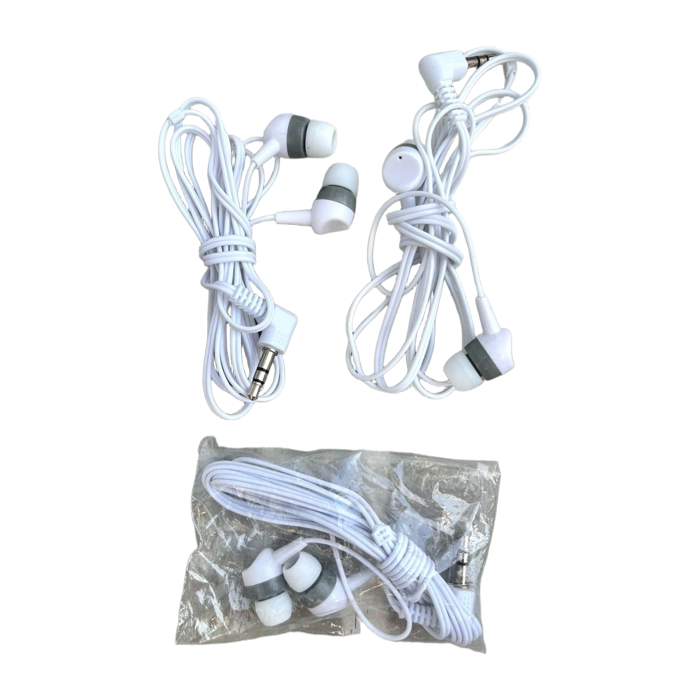 Valko -harmaat nappikuulokkeet. Kaikki käyttämättömiä, mutta osa poistettu pakkauksista. Perus 3,5mm kuulokeliitäntä.