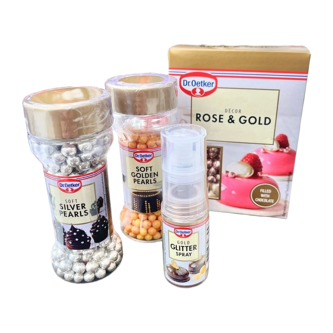 Setti sisältää laadukkaat Dr.Oetker hopea ja kulta nonparellit, syötävän kulta sprayn, sekä ruusukulta ja kulta nonparellisetti. Ovh setillä yhteensä 19,62e. Kaikki avaamattomia. Mielelläni myisin settinä.