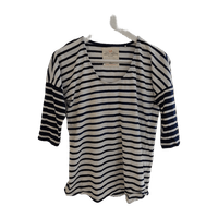 Lähes uudenveroinen laadukas ihanan kevyt paita tummansinisillä raidoilla, miellyttävän pehmeää materiaalia. Koko S. 100% Lyocell.