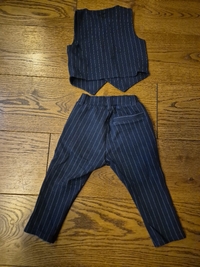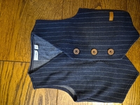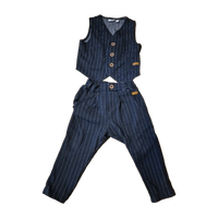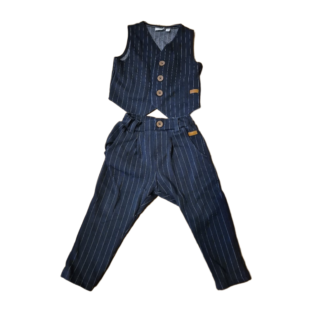 Raidallinen liivi ja housut, tyylikäs, vain pari kertaa päällä olleet. Housuissa kiristysmahdollisuus. Joustava ja pehmeä materiaali luomu puuvillasta, polyesteristä ja elastaanista.
