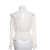 Naisten valkoinen pitsipusero, pitkät hihat, röyhelöt