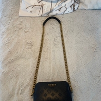 Guessin musta olkalaukku. Käytetty vain kerran ja säilytetty kaapissa. Melkein kuin uusi. Väri musta. Mukaan tulee dustbag.
