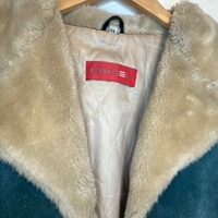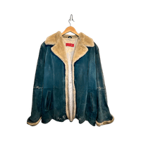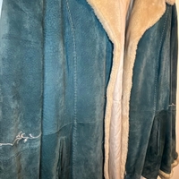 Pehmeä vuorillinen, upean syvän turkoosi mokka-nahkatakki, hyvässä kunnossa, mutta vaatii pesun ammattilaisen toimesta (takki on käytetty nahkapuhdistamossa kerran, ja tuli takaisin kuin uutena, takin on aika päästä kevyelle ”pesulle” uudestaan, en usko että maksaa paljon sillä takissa on vain hieman tummempaa ajan patinaa hihansuissa)
