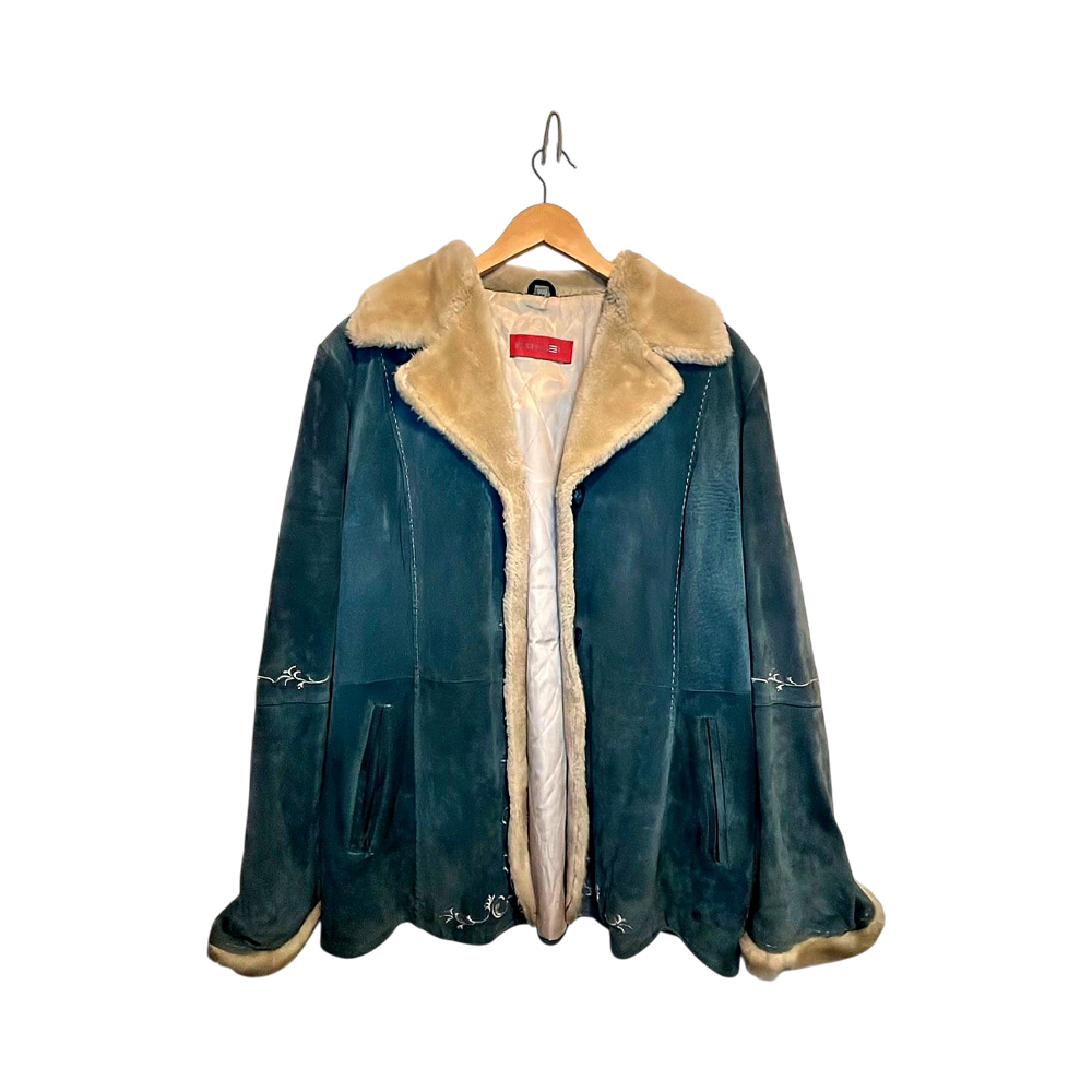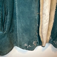 Finnish vintage deep turquoise seude jacket with embroidery details