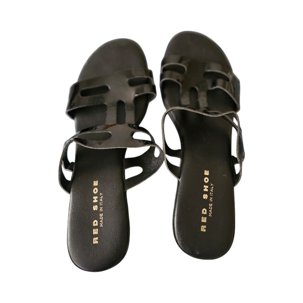 Mustat tyylikkäät nahkasandaalit, Red Shoe -liikkeestä aikoinaan ostettu ja jäänyt käyttämättä. Koko 41. Erittäin mukavat jalassa.