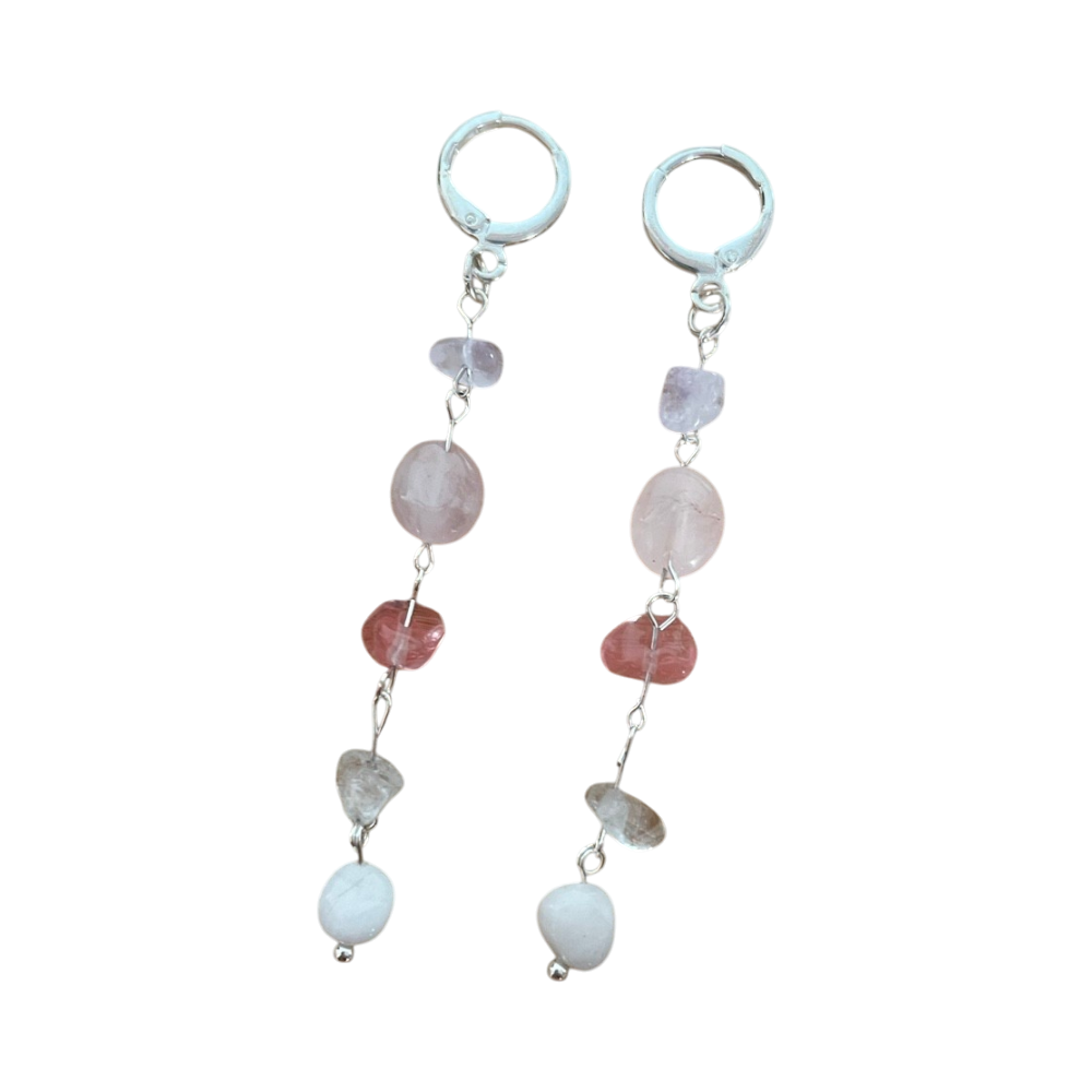 Pitkät korvakorut erilaisilla kivihelmillä💗 mm ruusukvartsia ja kuukiviä.