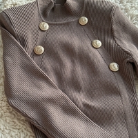 Beige ribbineulospuku, pitkähihainen ja napit edessä